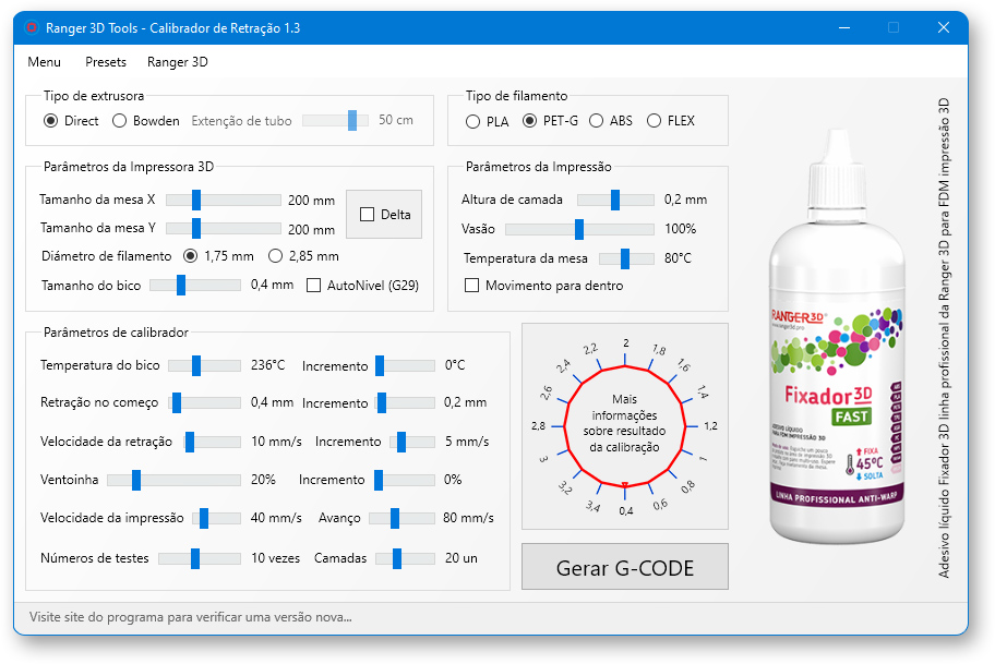 <p>Apresentamos para vocês um novo jeito de fazer calibração de retração com aplicativo da linha profissional Ranger 3D Tools. Programa feito por profissionais para profissionais da área de impressão 3D.</p>